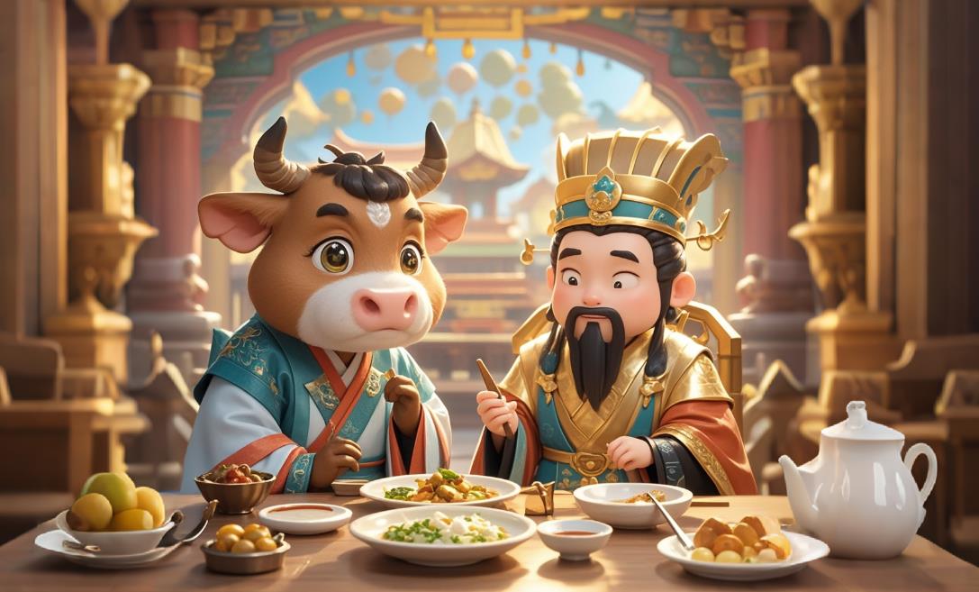 - 牛作为玉帝殿前的差役,经常往返于天宫和大地之间。当玉帝决定选拔生肖时,牛便自告奋勇地参加了选拔。它早早出发,跋山涉水,历经艰辛,最终成功到达天宫。