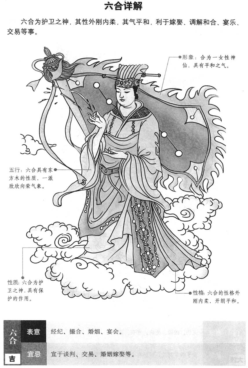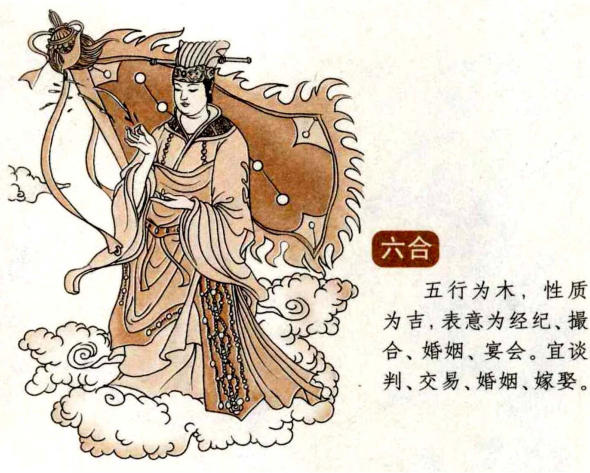 六合是吉神。“合” 代表合和、喜庆、和善,其出现往往预示着良好的人际关系和融洽的合作氛围,能够带来积极、和谐的局面。