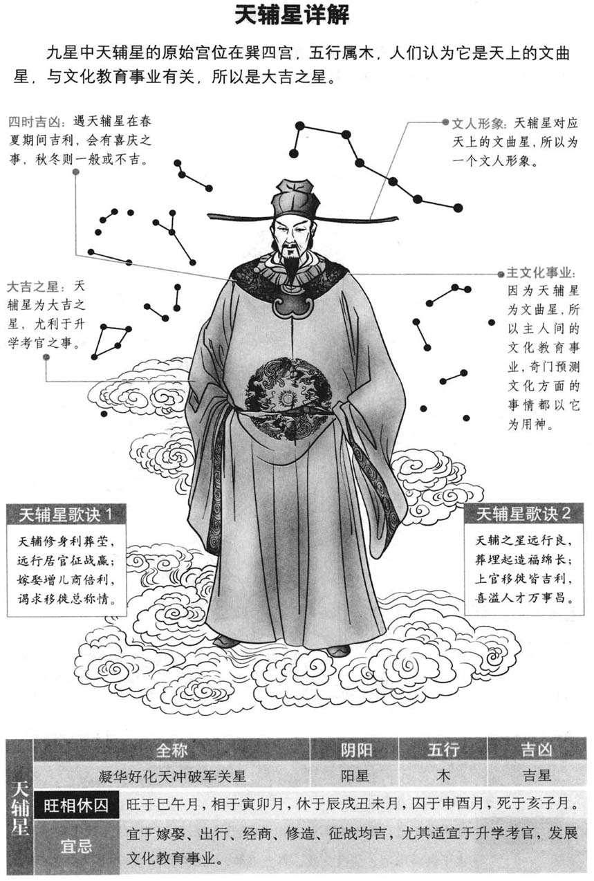 古人认为天辅星是大吉之星,多代表吉祥、顺利的意象,与文化教育、和谐发展等积极的事物相关.