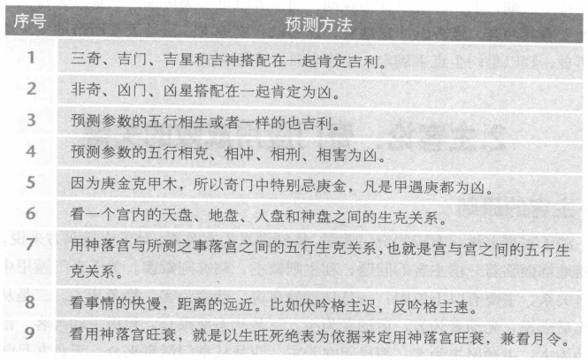 趋吉避凶 奇门遁甲盘排定后,就要进行占断预测。本来奇门遁甲的排盘就很复杂,而占断就更难了。奇门遁甲作为一种时空载体,可以说是将天、地、人、时间、空间、人类力量和自然界力量及其运行规律融为一体的宇宙全息思维模型,所以它特别适宜于人类超吉避凶,择时择方,即选择最佳时间、最佳方位去做自己的事情,避开不利的时间、不利的方位、不利的人和事及其自然现象。实际上吉凶并非是绝对的,而是相对的,在一定条件下还会相互转化。许多事情并不是非凶则吉或非吉则凶,而是吉凶参半,所以就要具体问题具体分析。 奇门预测步骤 奇门适甲是用于预测的一种工具,最初应用于军事,后来应用范围不断扩大,下面就介绍其具体的预测步骤。 占断总思路 奇门遁甲占断吉凶时,其根本原理是阴阳五行的生克制化,这与古代传统的预测方法是一样的。所不同的是奇门遁甲中的占断参数十分庞大,所以就要从不同角度,多侧面、多层次地全面观察分析,才能得出正确的结论。 第一,横看,这是占断的主要原则。即无论是十天干,还是九星、八门和八神,主要是以它们落宫的五行属性进行横向的比较,看其生克关系。如日千克时干,指的是日干落宫克时干落宫。 第二,竖看,一般针对于一个宫内的天、地、人神四层之间来说。如天盘与地盘的关系,主要看九星与地盘宫五行属性上的生克如天心星属金,位于震三宫,则为天盘克地盘。 第三,看远近、内外、快慢。阳遁以一、八、三、四宫为内、为近、为快,以九、二、七、六宫为外、为远、为慢。阴遁则与阳遁正好相反。另外,伏吟格主迟,反吟格主速。 第四,看高低旺衰,即各参数的旺相休囚。比如十天千的旺衰主要按十天千生旺死绝表来断,兼看月令。八门、九星的旺衰则主要按月令、节气来断,同时考虑其落宫状态综上所述,只有全盘看问题,才能提高准确率。这种全面观察分析问题的方法,比起单独看星、单独看门或单独看日干、时干的方法,其准确率要高得多,提供的信息也更加全面和丰富。实践也证明,只有从多角度来看问题,其信息在多数情况下都是一致的和同步的。 占断方法举要 奇门遁甲中的占断方法有许多,下面就一些方法加以说明。一是三奇、三吉门、吉星和吉神搭配在一起为吉。二是非奇、凶门、凶星搭配在一起为凶。三是五行相生比和者为吉。四是五行相克、相冲、相刑、相害为凶。五是特别忌庚金,奇门遁甲中凡是甲遇庚都为凶。六是看一个宫内的天盘、地盘、人盘和神盘之间的生克关系。七是用神落宫与所测之事落宫之间的五行生克关系。八是看事情的快慢,距离的远近。九是看用神落宫的旺衰。 奇门用神占断 奇门遁甲中应用最广泛的是用神占断法。奇门用神有许多特征,一是预测符号的多义性。比如八门中的开门,测工作时可代表工作、单位、领导,在测财时可代表门面、店铺、柜台等。二是用神很多。奇门遁甲预测符号中的十天干、八门、九星、八神、九宫、八卦和十二地支都可作为用神,加起来共有六十四个。三是用神的多重性。奇门预测同一事物,具有多重用神。比如预测人体疾病,九宫格局和内盘外盘代表人体体表和体内的各个部位;天芮星代表病神,也可代表疾病的主要部位;八门中的伤门、死门等也与疾病有关;八神中的白虎、玄武等也与疾病有关;天心星和乙奇又代表医生和医药,等等。四是奇门用神有纲领性。比如测天时时,以九星为主:测人事时,以八门为主,测地理时,以九宫为主。所以,掌握奇门遁甲中的用神非常重要,是占断不可或缺的内容。 奇门应期判断 奇门遁甲的占断中还有对应期的判断。其主要原则:一是根据用神的旺衰长生墓绝,所处宫位是内盘外盘、可知局是伏吟还是反吟来判断应期的远近、快,远慢断年月,近快断日时,二是先定地支,后配天干,以定应期的地支为主,兼看天干定应期;三是先以值符定应期,后以值使定应期。其主要方法:一是用六甲值符定应期,刑、冲者以合为应期,旬空者以填实为应期。二是以天盘六仪所带地支看其冲合,逢合以冲定地支,逢冲以合定地支。三是天盘所带地支又不冲又不合,则以星门生克来确定,生逢生日,克逢克日。 奇门预测方法合集 由于奇门遁甲的预测参数众多,所以其预测方法也有很多,这样才能综合各方面原因,得到准确的结果,下面就列表介绍一些方法。 |