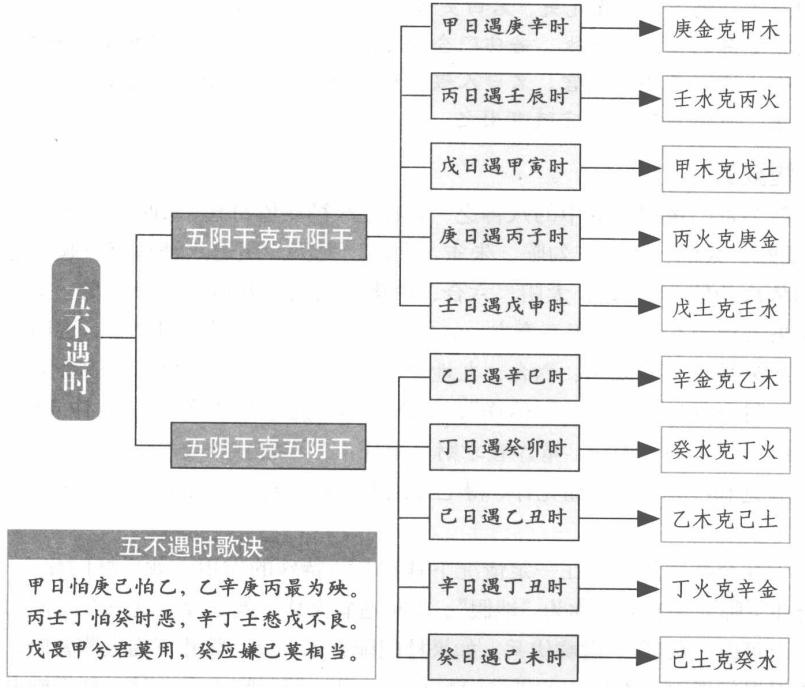 【原文】 五不遇时龙不精,号为日月损光明。 时干来克日干上,甲日须知时忌庚。 【原注】 葛洪曰:“五不遇时者,谓刚柔日相克,而损其明,纵有奇门,不可行,百事凶。”此乃时干克日干,名为本主不和,极凶。旧选择书内差,载时支克日干,所以不准。今本理校正历府通书,悉皆改正刊行。 截例诗曰:时干克日有灾危,甲日从午逆数之。 若到戌亥便越过,百事不宜莫用之。 又起例曰:甲日怕庚己怕乙,乙辛庚丙最为殃。 丙壬丁怕癸时恶,辛丁壬愁戊不良。 戊畏甲兮君莫用,癸应嫌己莫相当。 五不遇时者,即时干克日干,阳干克阳干,阴干克阴干也。 【白话提要】 五不遇时就是时辰的天干克日辰的天干。阳干克阳干,阴干克阴干,阳干阴干各有五个,所以称为五不遇时。有歌诀说:“甲日怕庚己怕乙,乙辛庚丙最为殃。 丙壬丁怕癸时恶,辛丁壬愁戊不良。戊畏甲兮君其用,癸应嫌己莫相当。”通过此歌诀可以知道,五不遇时就是甲日庚午时、乙日辛巳时、丙日壬辰时,丁日癸卯时,戊日甲寅时、己日乙丑时、庚日丙子时,辛日丁酉时,壬日戊申时,癸日己未时。如果奇门遁甲中遇到五不遇时,其阳干与阴干就像日、月损失光明一样损失了自己的光彩。据说这时纵有奇门也不可行,百事皆凶。 根据具体日干,可以推出五不遇时。比如日干为甲,甲为阳木,其五不遇时之时干应为克阳木之阳金,即六庚,日干时干都已知,则可推出时支,用“甲己还加甲”的口诀,则甲日子时时干为甲。甲子、乙丑、丙寅、丁卯、戊辰、己巳、庚午,甲日五不遇时为庚午。又如丁日日干丁为阴火,五不遇时干当为克阴火之阴水,即癸。日干为丁,时干为癸,扰“丁壬庚子居”的口诀,则丁日子时时干为庚,庚子、辛丑、壬寅、癸卯。丁日五不遇时为癸卯。其他日之五不遇时,可依此类推。 五不遇时格 五不遇时格就是时的天干克日的天干,这时日天干就像日、月损失光明一样损失了自己的光彩,此时百事皆凶。 此信息最后更新时间为:2020-11-5 00:00