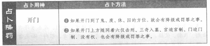 占降罚时,如果开门到了鬼、废、休、囚的方位,或者上方随同着六仪击刑三奇入墓、宫追宫制、门迫门制,没有权,那就应该有降级或罚罪的现象出现。