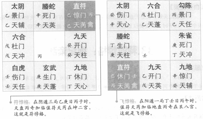 青龙反首与飞鸟跌穴是奇门遁甲中的两个吉格,下面就通过示例来说明其具体的格局。