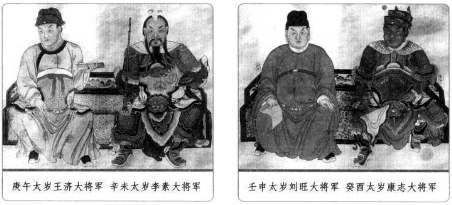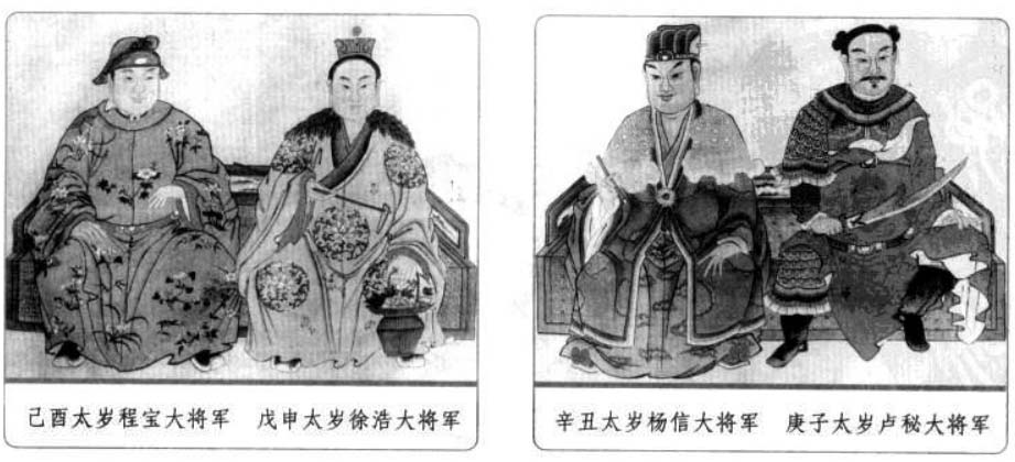 六、太岁星君 太岁星君又称太岁,是天上的木星,因为木星每十二个月运行一次,所以古人称木星为岁星或太岁,它既是星辰,也是民间奉祀的神。紫微斗数作为中国土生土长的命理推演方法,其中同样有对于太岁的运用。 太岁是古代民俗文化中一个常见的概念,人们经常说“太岁头上动土”,“太岁当头坐,无喜必有祸”等,可见人们对于太岁的禁忌与畏惧。而人们常说的“犯太岁”其实就是指一个人的生肖与该年的生肖相冲,即生年地支与流年地支重叠相同,本命年为人生之“坎”也就是本命年“犯太岁”。在紫微斗数中,太岁作为星曜有如下特性: 1.太岁为当年“岁之君”,主一年的吉凶,为水之精。太岁与众星不睦,运限逢之,若遇紫微、天府、左辅、右弼、文昌、文曲、天魁、天钺星扶持,灾少,宜防有六畜之失。若与擎羊、陀罗、火星、铃星、地空、地劫、破军、天使星相冲身命,则易财散人亡,女人宜防产厄。 2.太岁喜守迁移、官禄、财帛宫三方,又喜遇紫、府、左、右、机、梁、日、月诸星,诸星入庙则吉,陷地加煞则凶。 3.年犯岁君,如子年生人,太岁在子;月犯岁君,如子月生人,太岁在子,日、时亦然。 歌曰: 太岁当头坐,诸神不敌当, 任是铁罗汉,也吃皱眉汤, 逢凶偏作恶,年辰遇必殃, 若遇科权禄,横发不寻常, 忌宿临其内,夹限必身亡, 更有流年论,重逢限不宜, 若还临命限,灾疾有刑伤, 更值官符宿,未免犯官防, 若遇吉星凑,方可免灾殃。 太岁头上动土的由来与值年太岁 古代天文学中把木星称为“太岁”(或岁星),并划分周天为十二份,太岁每年行经一次,都有特定的名称。太岁某一年在某一方,这一方就不能动土搞建筑,否则触犯了太岁,就会招来灾祸。这一说法早在宋朝就有。元末明初施耐庵《水浒传》第二回也曾提到过:陈达准备从史进所住的史家村借条路去打华阴县。路经史家村时,史进召集众庄客截住道路,对陈达喝道:“你也须有耳朵,好大胆,直来太岁头上动土。”敢这样说的当然就是有来头的人。 在道教中,太岁则为道教神明的尊称,又称太岁星君,或者岁君。一甲子60年中,每一年天上都会派一位神仙出来值年,他负责掌管这一年人间的福与祸,也掌管这一年出生的人一生的祸福,老百姓尊称这些神仙为值年太岁,60年就有60位太岁,所以统称为60甲子神。本书此后4页中所列出的就是值年太岁的部分。