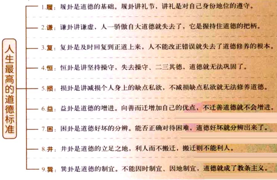 “易之兴也,其于中古乎?作易者,其有忧患乎?“中国文化对忧患意识的看法、就是“人无远虑、必有近忧”。中国文化的人生哲学就是这两句话。若没有长远深入的思考,便会有不虞之事发生.所以人生永远都在忧患之中,我们都是生于忧患,死于忧患。因此,忧患意识还有什么好讲的呢?但是孔子还是在这里讲到了这个问题。 “易之兴也,其于中古乎?”“易之兴也”,并不是说易之产生也,《易经》这个文化本来有,哪一个时代很流行、很兴盛呢?“兴”就是很流行、很兴盛。“作易者,其有忧患乎!”“作易”并不是开始画八卦,是指作《易经》这个文章。我们现在看到的《易经》是周文王作的,周文王是在忧患中作的《易经》,是他坐在牢里作的。文王坐牢并不是普通的坐牢,纣王随时都准备杀他。他内心的痛苦,是可以想象的。所以孔子在这里说,“作易者,其有忧患乎?”是说人生在痛苦中才懂得《易经》的道理。 于是孔子便提出了履、谦、复、恒、损、益、困、井、巽这九个卦来加以解说。“是故履,德之基也;谦,德之柄也;复,德之本也;恒,德之固也,损,德之修也;益,德之裕也;困,德之辨也;井,德之地也;巽,德之制也。”这段话的意思是,履卦是道德的基础。履卦讲礼节,讲礼是对自己身份地位的遵守。谦卦讲谦虚,人一骄傲自大道德就失去了,所以它是握持住道德的把柄。复卦是及时改正错误回复到正道上来,人不能改正错误就失去了道德修养的根本。恒卦是讲坚持操守不变的,失去操守、二三其德,道德就无法巩固了。损卦是讲减损个人身上的缺点私欲的,不减损缺点私欲就无法修养道德。益卦是道德的增进。向善而迁增加自己的优点,不迁善道德就不会增进。困卦是道德好坏的分辨。能不能正确对待困难,道德好坏就分辨出来了。井卦是道德的立足之地,利人而不搬迁,搬迁则不能利人,道德就没有了立足之地。巽卦是道德的制宜。不能因时制宜、因地制宜,道德就成了教条主义的东西。这是讲人生最高道德的完成,正因为人处在忧患之中,才明白这些易的道理。 此信息最后更新时间为:2024-10-31 14:31