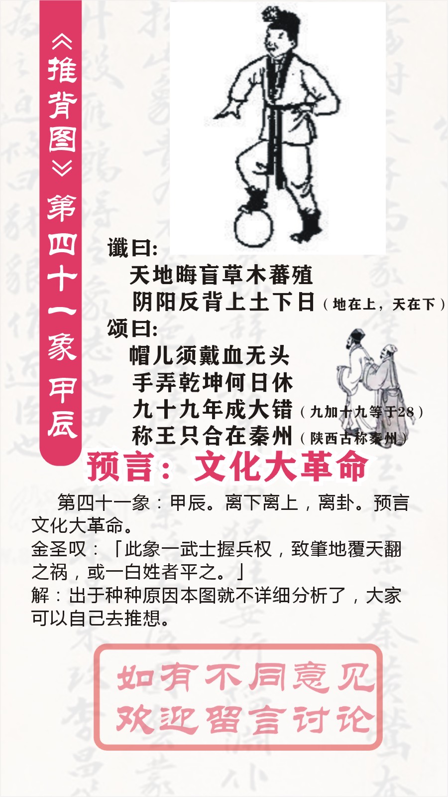 我们应当以理性客观的态度看待《推背图》这样的古籍,把它作为研究古代文化、古人思维方式以及观察历史演变脉络的参考资料,而对于其所谓的“预言”内容,不能盲目迷信,更要避免用其去牵强附会具体历史事件,特别是像“文革”这样复杂且有着明确历史背景、有着众多严肃研究成果的重大历史阶段,应从正规的史学研究角度去认识和理解。